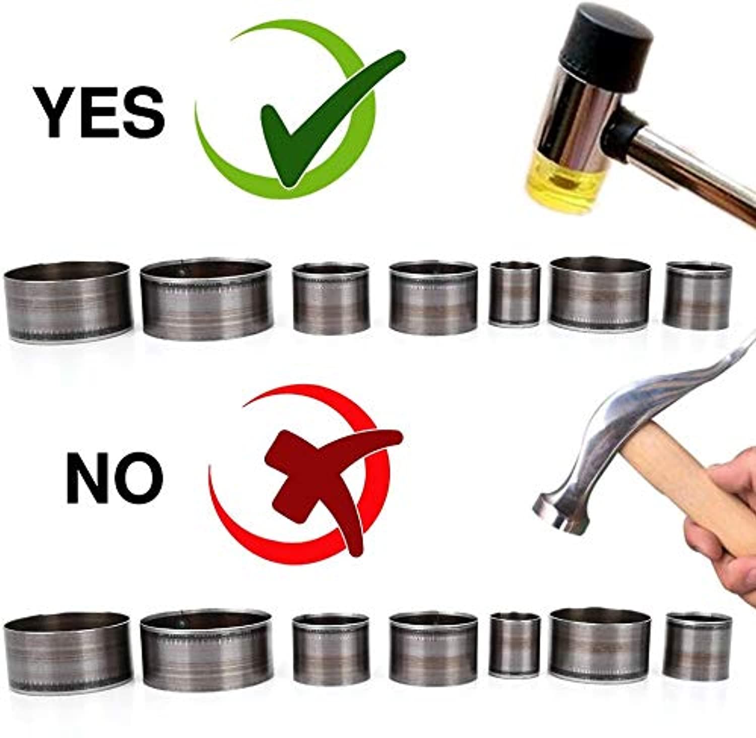 Fácil de usar, coloca una fuerte pieza plana de madera o tabla en la parte superior de las formas de metal y luego martillo, no dañará las formas de metal.