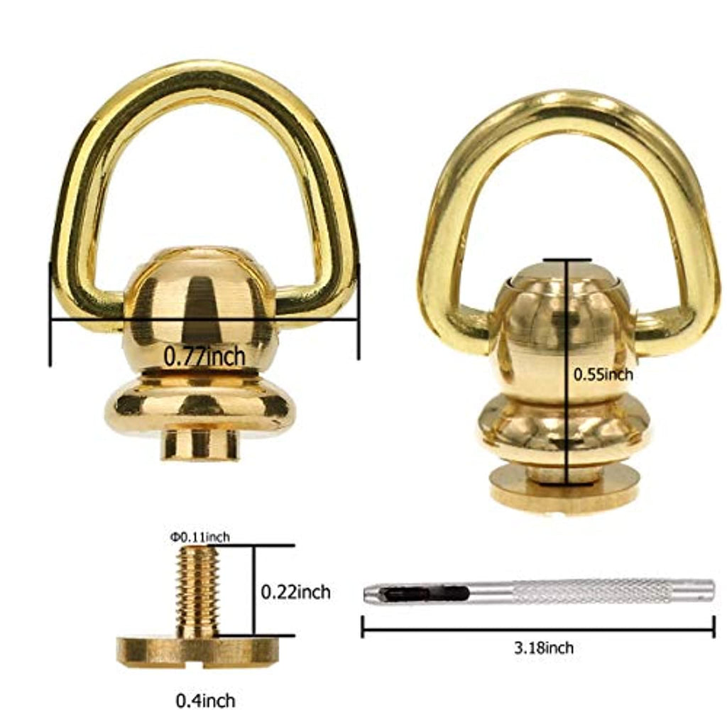 Pendientes de bola de latón Remaches D Anillo para cuero Crossbody monedero artesanía,4 juegos