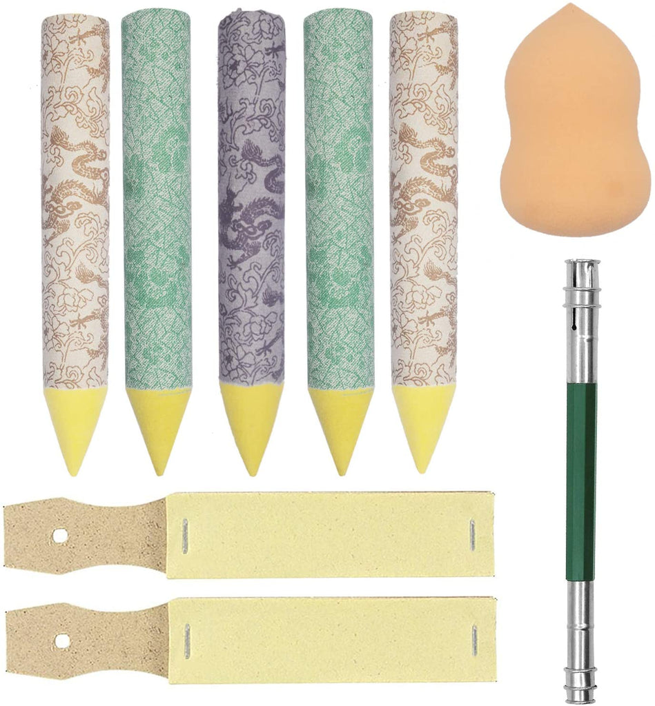 Ertra Big Art Blendersfor - Juego de 9 piezas para bocetos, 0.906 in de ancho, mezcla de grasa, tortillones con sacapuntas de papel de lija y una herramienta de extensión de lápiz para dibujar y licuadora