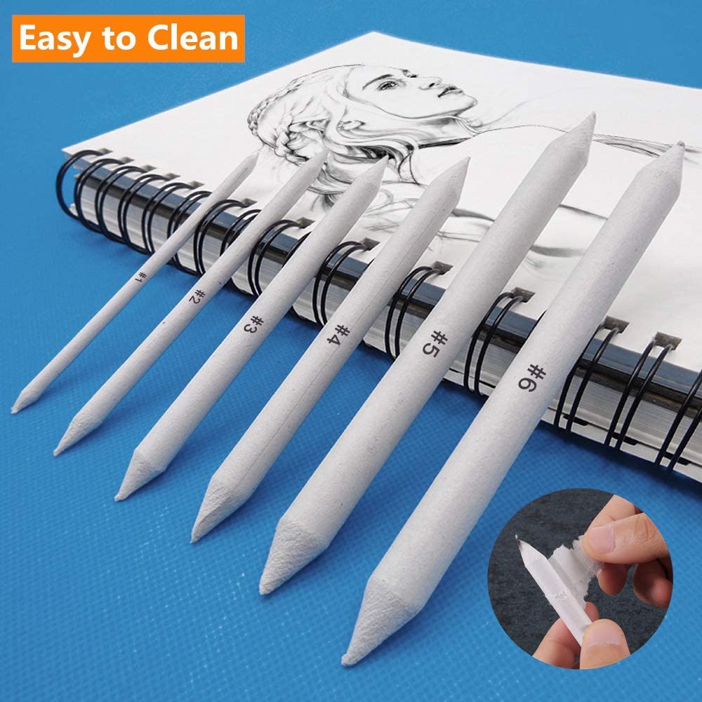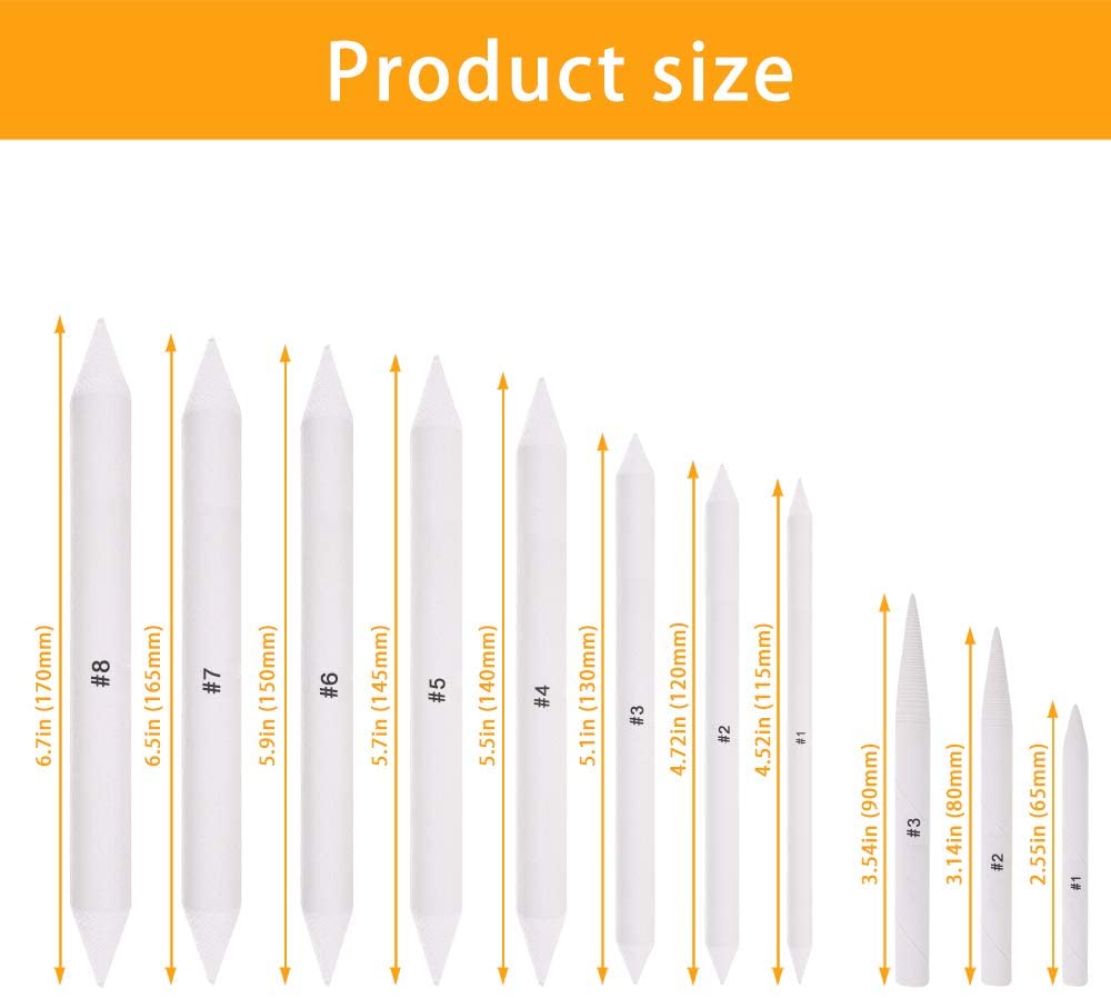 El juego de tocones y tortillas está hecho de papel comprimido suave de alta calidad, exquisito, uso más conveniente, adecuado para manchas, creación de sombras, línea de suavizado, efecto brumoso, mezcla o alisado de pastel, carbón, tiza y lápiz de dibujo de ilustraciones. Vienen en diferentes tamaños, satisfará tus diversas necesidades.