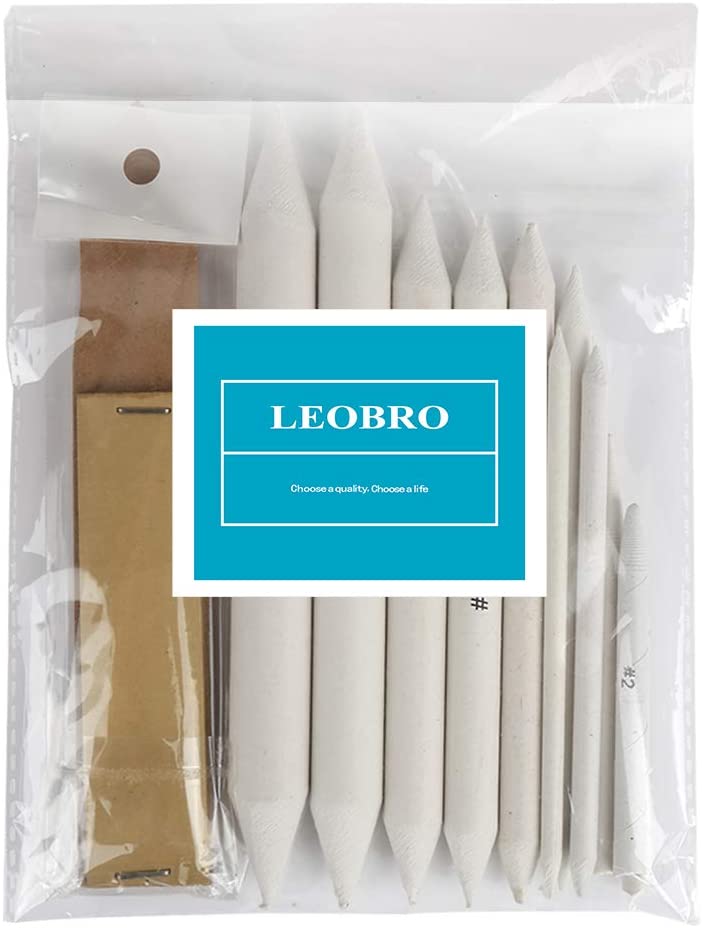 LEOBRO - Juego de 11 piezas de mezcla de artista y tortillón con 1 sacapuntas de papel de lija para dibujo de dibujo de estudiante