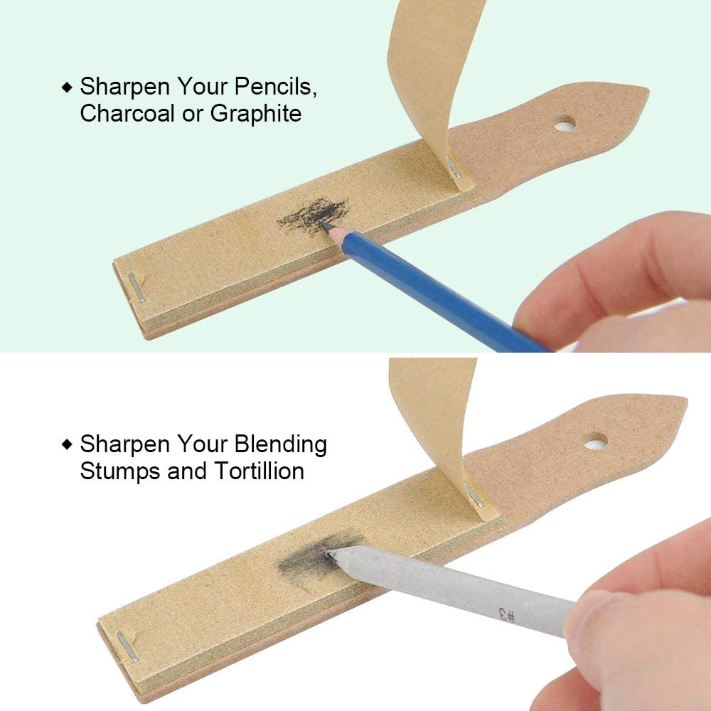 • Sacapuntas de papel de lija: afila la punta mientras limpias el bolígrafo, se puede utilizar para tocones pastel y tortillones, lápices puntiagudos. Fácil de usar, una herramienta imprescindible para dibujar bocetos.