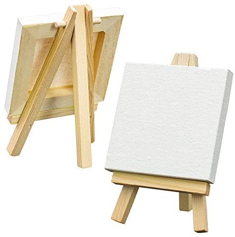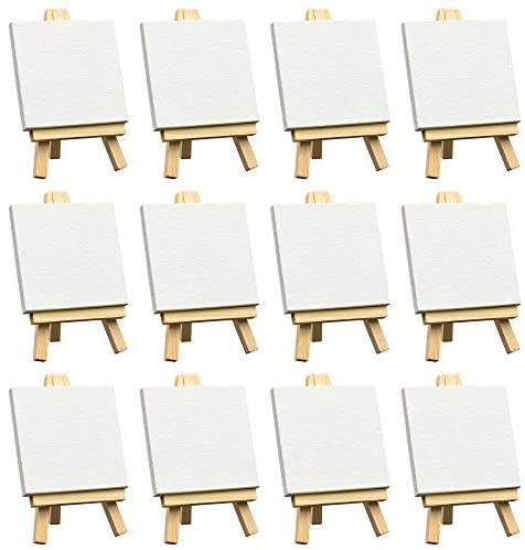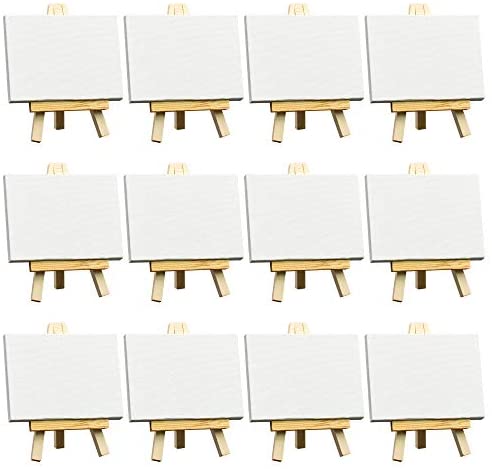 Set de caballetes de lona de 3 x 4 pulgadas de Fixsmith, paquete de 12 unidades, contiene 12 mini lienzos y 12 mini caballetes pequeños, lienzos en blanco estirados y caballetes de madera para pintar, manualidades, dibujo, decoración