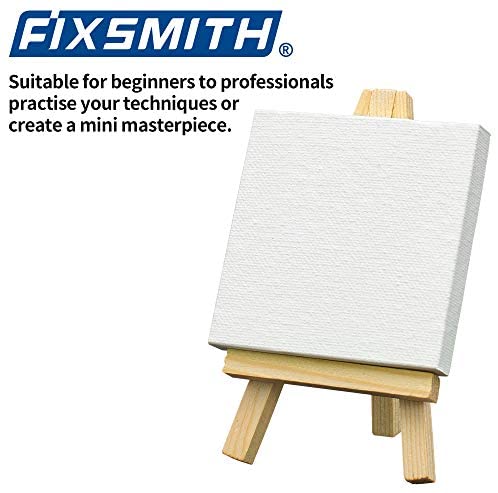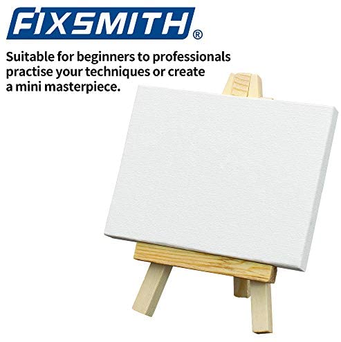 El juego incluye: mini caballetes de madera natural de 12.0 in a 5.0 in y mini lienzos estirados blancos de 12.0 in x 4.0 in. Crea y exhibe mini obras maestras con el juego completo de caballete y lienzo, mientras tanto, nuestros suministros de pintura en lienzo ofrecen gran calidad a un gran y asequible precio. Esperamos que disfrutes de la experiencia de compra con Fixsmit.