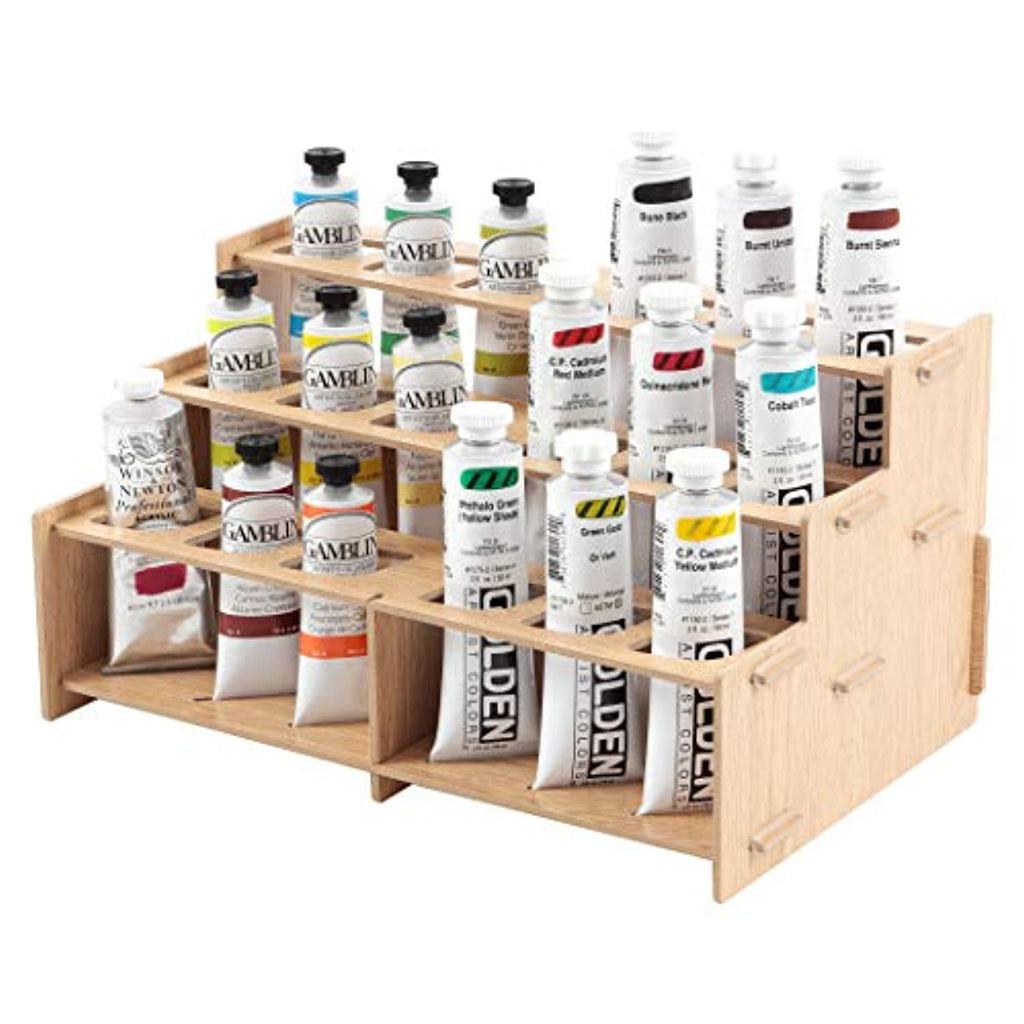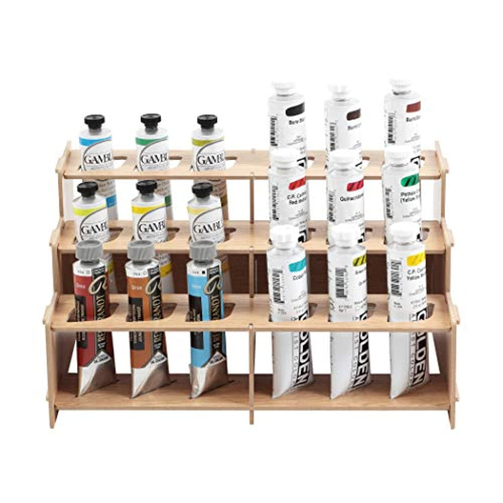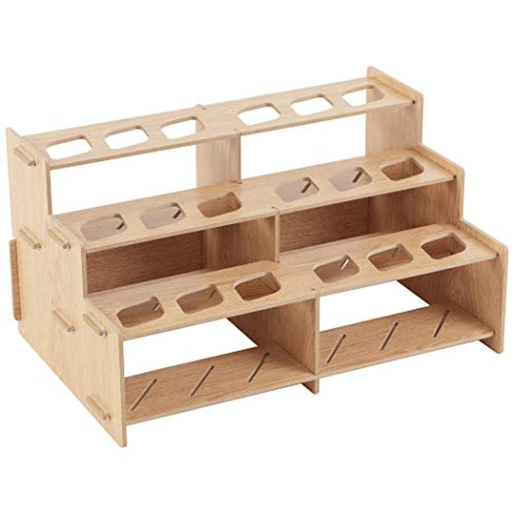 Inicio→Organización y almacenamiento→Mezzo Artist Brush and Paint Tube Organizer Rack (#002) Wood-Grain Laminate, Multi-Layer Storage Display Stand for Paintbrushes, Oil & Acrylic Paints | Holds 18 Tubes up to 60ml