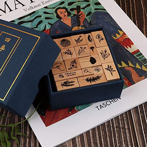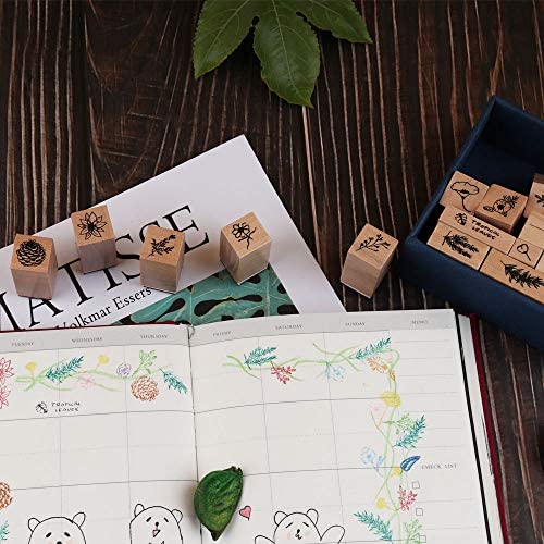 Inicio→Sellos decorativos y almohadillas→Dizdkizd 19 piezas de sellos de goma de madera, plantas y flores, decoración de madera montada sellos de goma para manualidades, tarjetas y álbumes de recortes