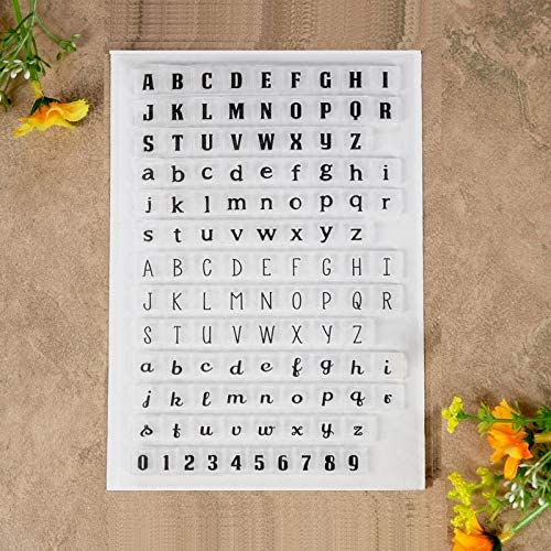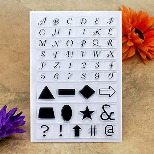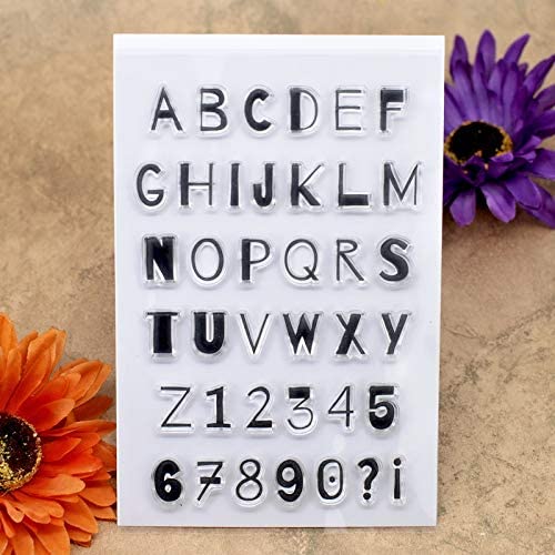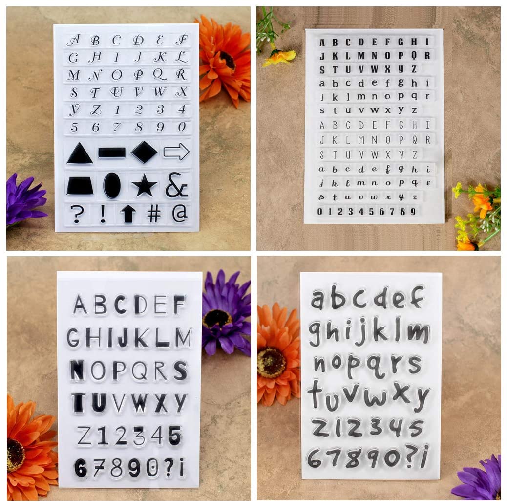 Kwan Crafts 4 hojas de diferentes estilos de alfabeto inglés, carcasa inferior con número de geometría, sellos transparentes para hacer tarjetas, decoración y bricolaje, álbumes de recortes