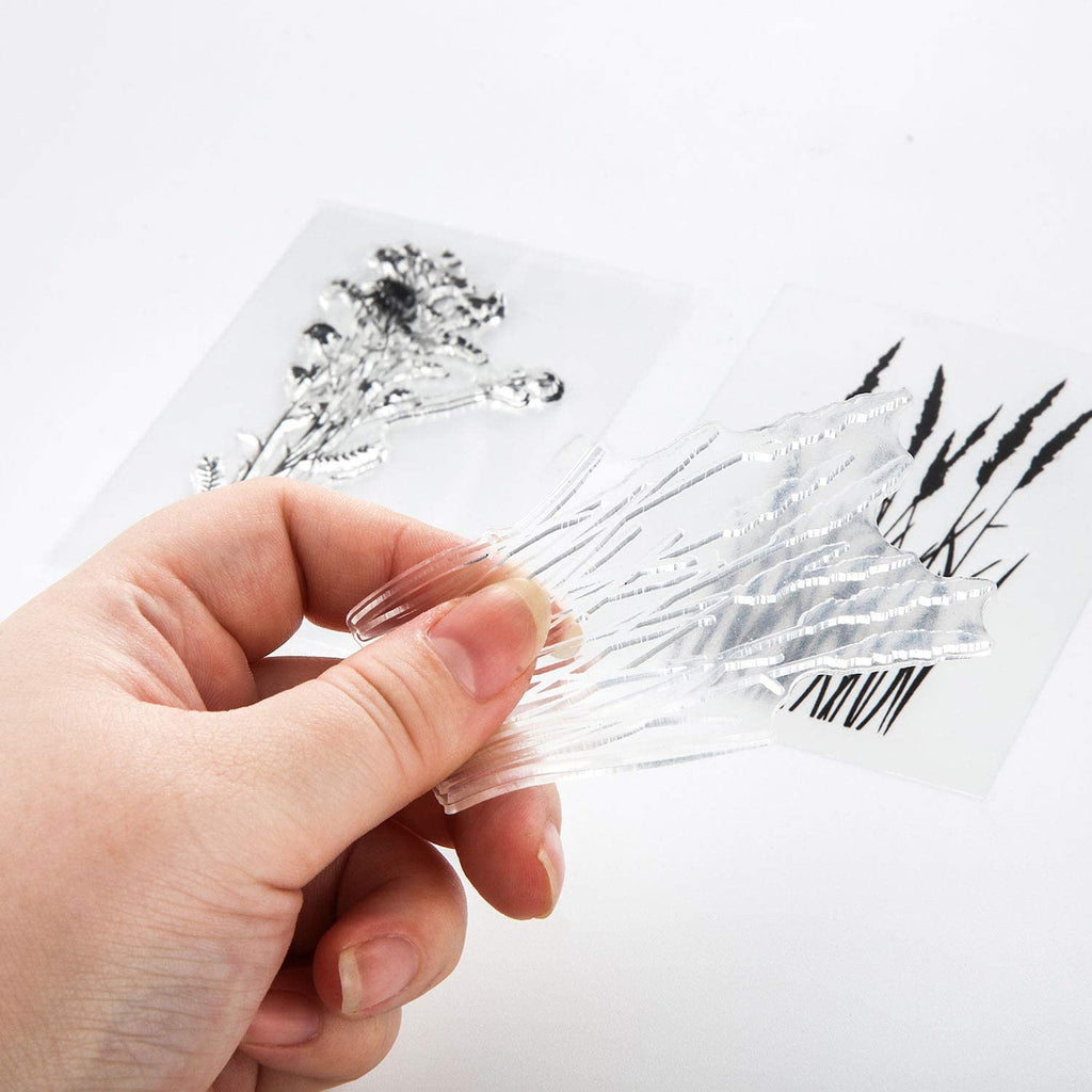 Contenido del paquete: hay 6 hojas de sellos transparentes con motivos de flores con diferentes diseños, cada hoja mide aprox. 2.6 x 3.7 in, cantidad suficiente y tamaño adecuado para satisfacer tus diferentes necesidades decorativas en la vida cotidiana.