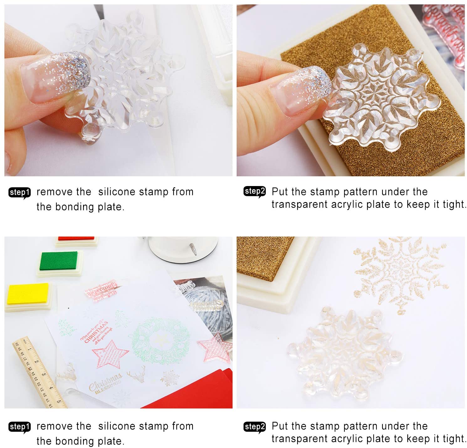 Duradero de usar: hecho de material de silicona de calidad, resistente y duradero, no es fácil de romper, asegurando un uso a largo plazo, estos sellos transparentes de silicona son fáciles de aplicar y pueden presentar varios patrones hermosos, por favor, limpiar y lavar con agua después de cada aplicación.