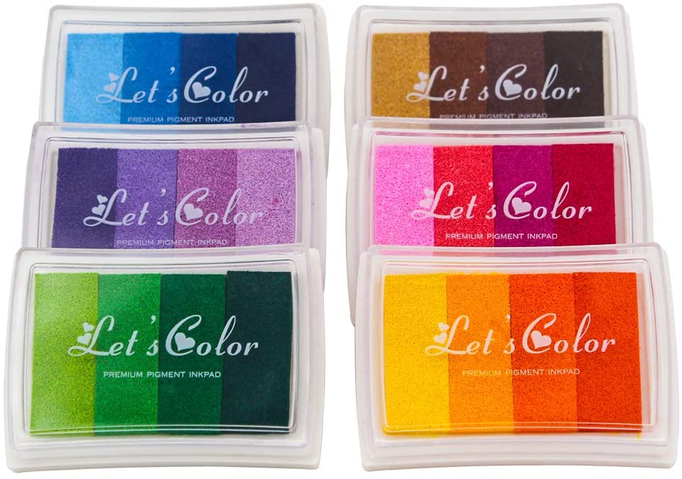 ✎ 【Multiple And Beautiful Color】- 6 pcs gradient color rainbow finger stamps ink pads. 24 shades of gorgeous colors in pinks, purples, greens, brown, yellows. You can use multiple colors together or separately.