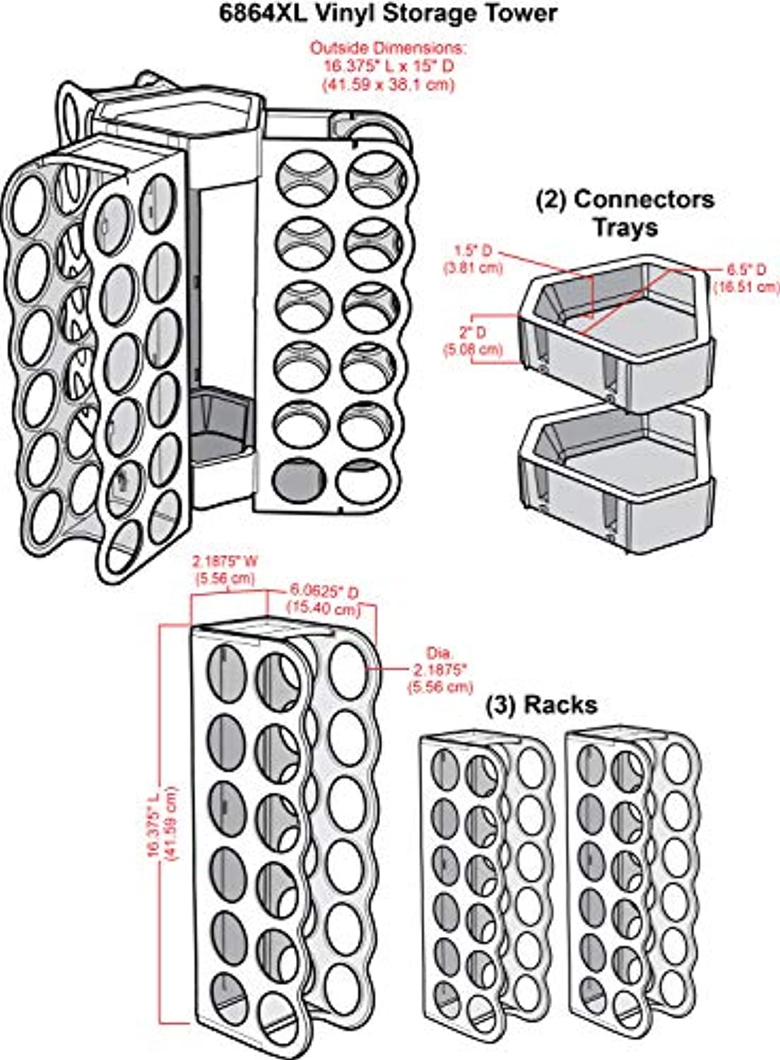 Detalles del producto: La torre mide 17.4" x 9" x 4.25". Almacena 36 rollos de vinilo.