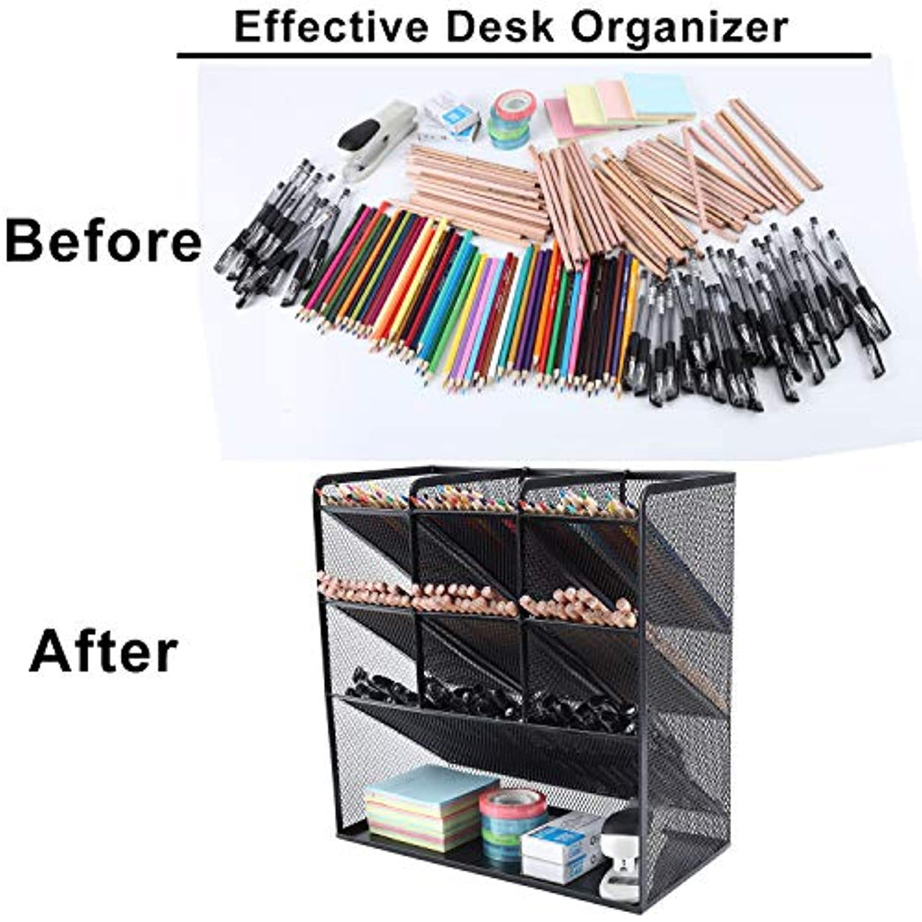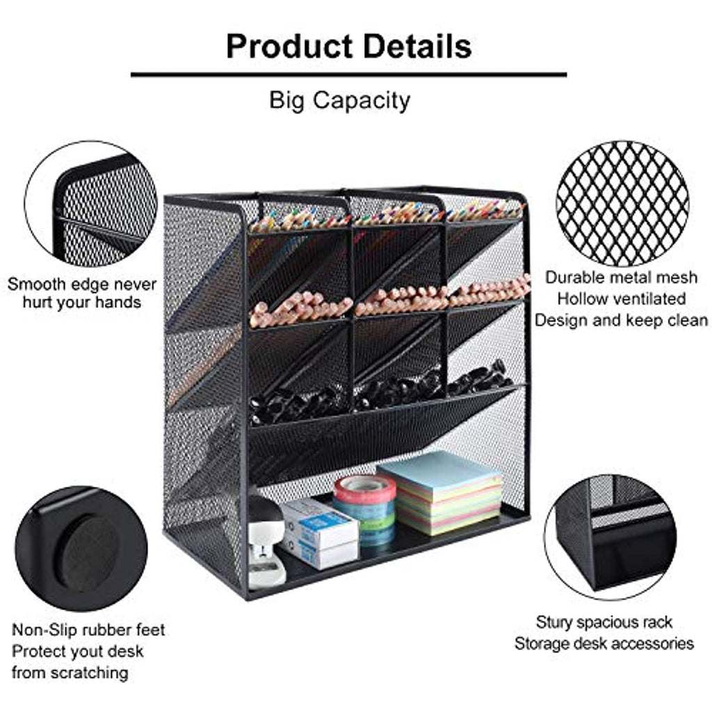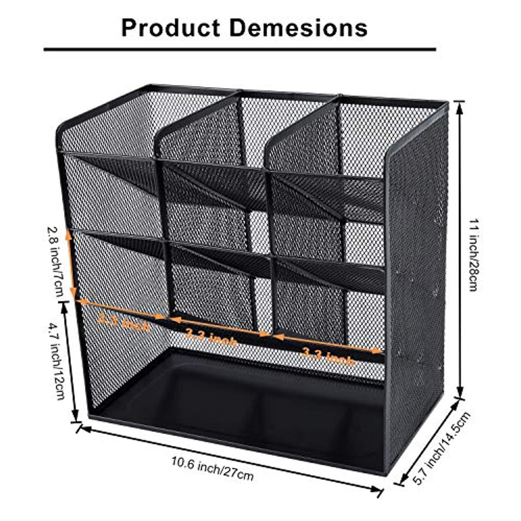 • Este organizador de malla es conveniente para almacenar y clasificar artículos de escritorio como lápices, rotuladores, gafas, etc., lo que te ayuda a ahorrar espacio. Haz que tu escritorio se vea más ordenado y limpio. También es ideal para guardar tus brochas de maquillaje, esmaltes de uñas, pintalabios y otros objetos personales pequeños ordenados por tipo, lo que hace que sea mucho más fácil encontrar lo que necesitas.