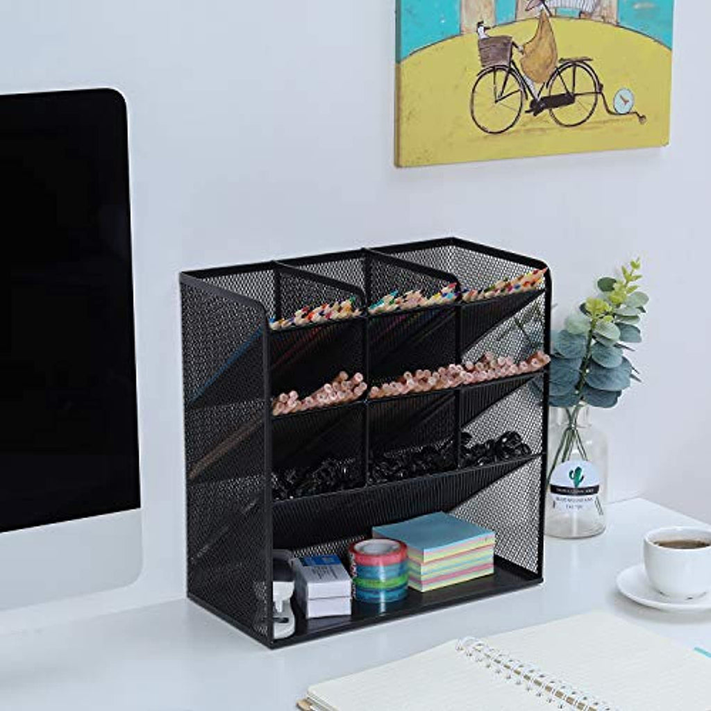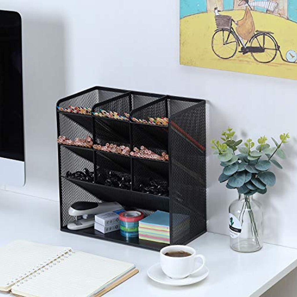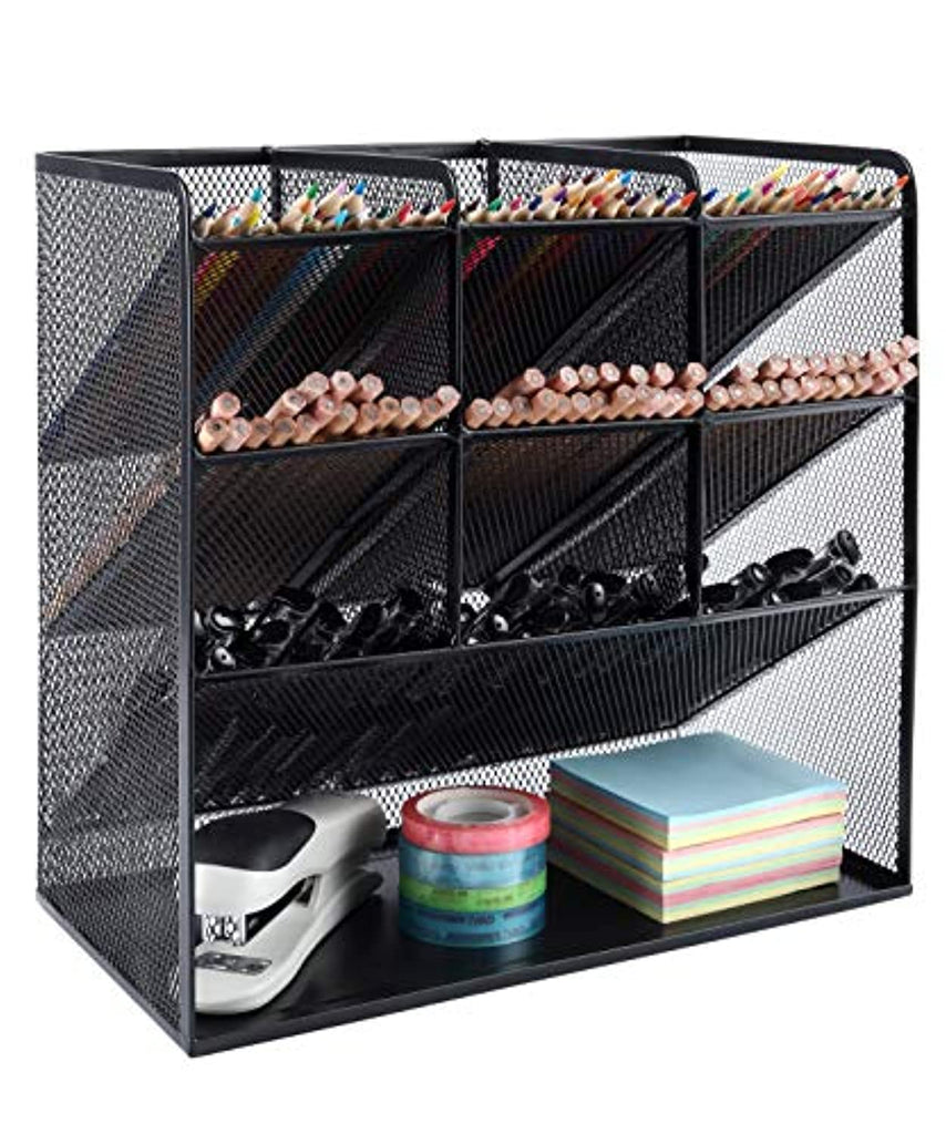 • Juego de 9 compartimentos con un estante, suficientes compartimentos para permitir cierta organización básica. Gran capacidad, multifunción que te ayuda a organizar los dispositivos de escritorio y mantener el escritorio limpio y ordenado.
