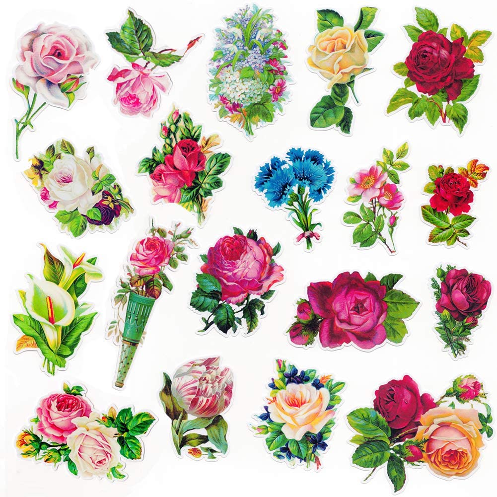 Paquete: este paquete de pegatinas de flores de estilo de pintura al óleo de la vieja escuela incluye 37 piezas precortadas individuales con colores vivos y brillantes, rojo, amarillo, azul, blanco, rosa.