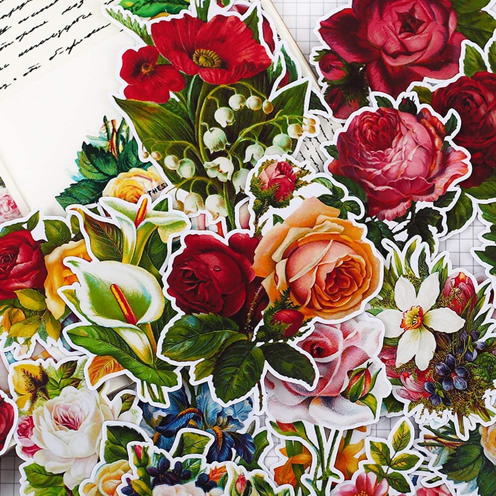 Everjoy Vintage Retro Pintura al óleo Estilo Flor Planner Pegatinas DIY Adornos Decorativos Jardín Flores Silvestres Adhesivos para Scrapbook, Diario, Creación de Tarjetas, Letras, Calendario - 37 Piezas