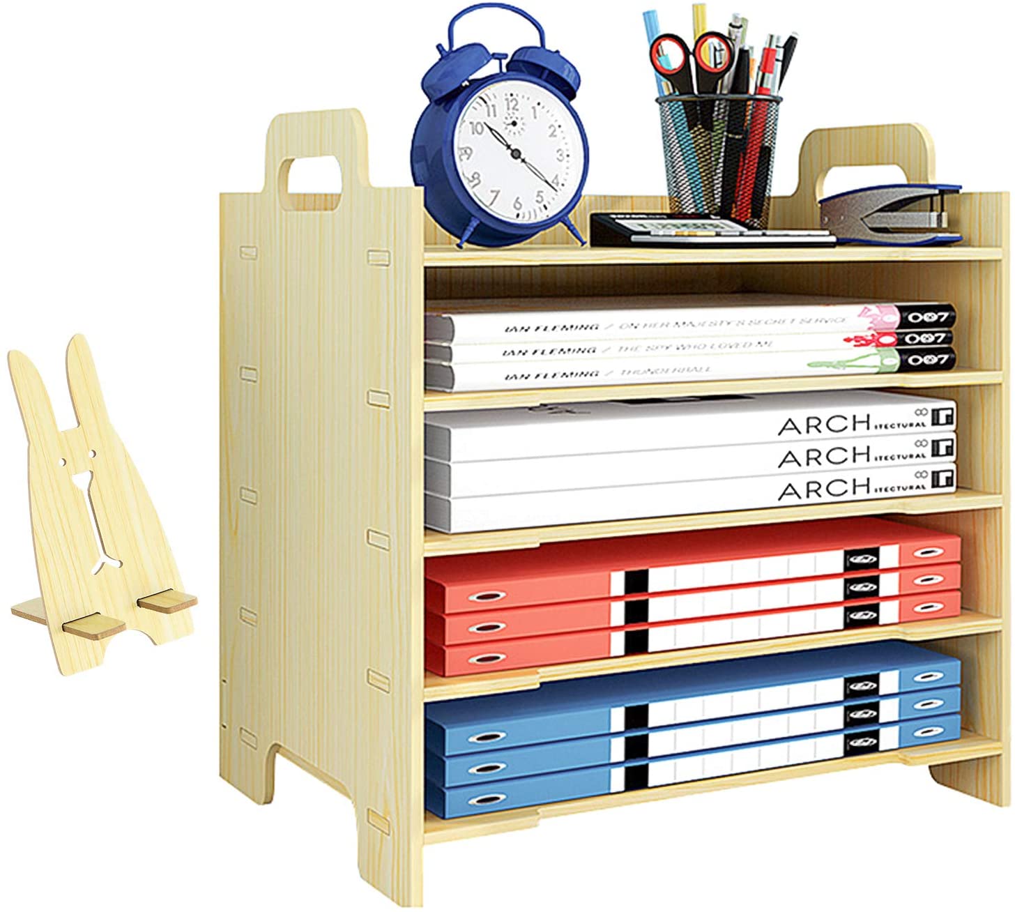 【Ahorro de espacio】: El almacenamiento de archivos es de 5 capas para que pueda ordenar diferentes archivos o elementos esenciales de oficina. Maximiza tu espacio vertical y mantenga su escritorio claro, sencillo para hacer nuestra vida mejor.