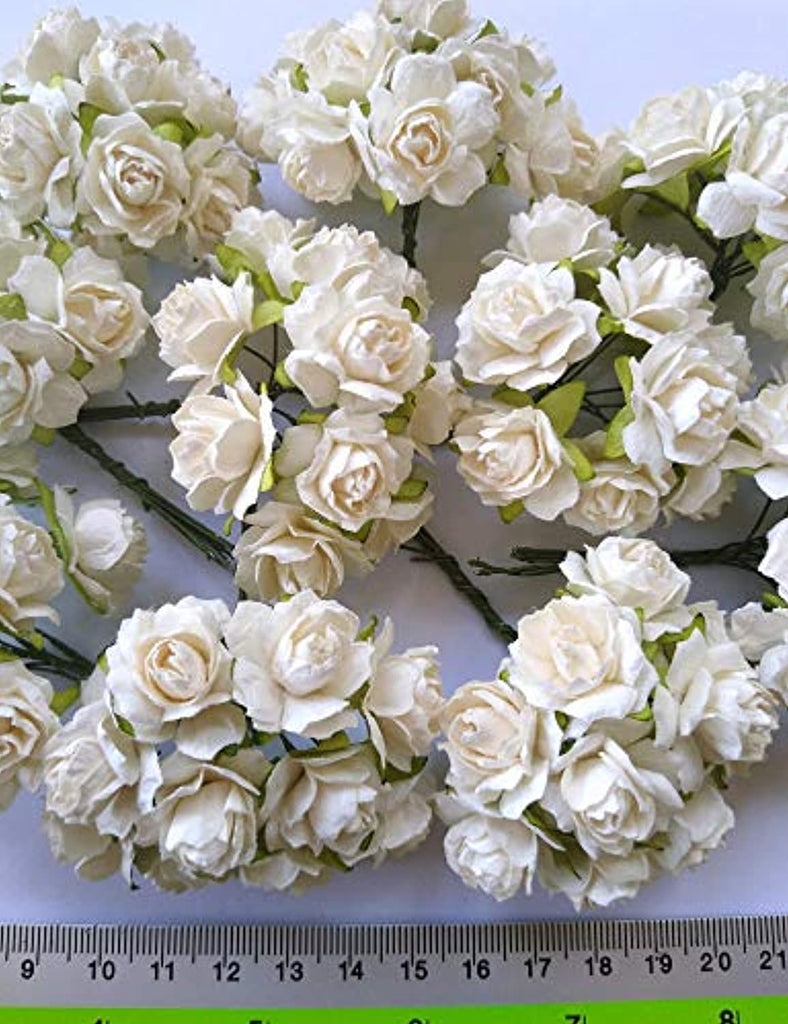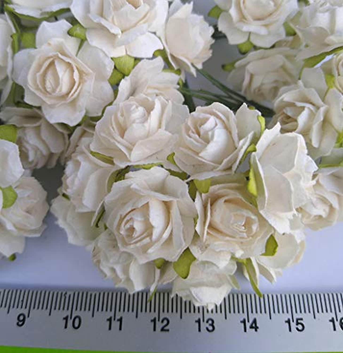 NATTHAFLOWER - 100 rosas artificiales blancas de papel morera para manualidades, tamaño de 0.787 in, decoración para álbumes de recortes - Arteztik Venta
