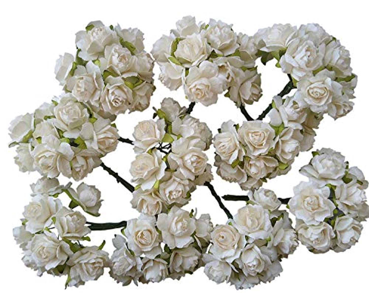 NATTHAFLOWER - 100 rosas artificiales blancas de papel morera para manualidades, tamaño de 0.787 in, decoración para álbumes de recortes