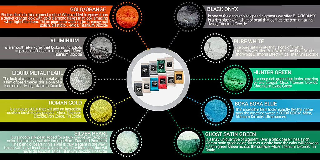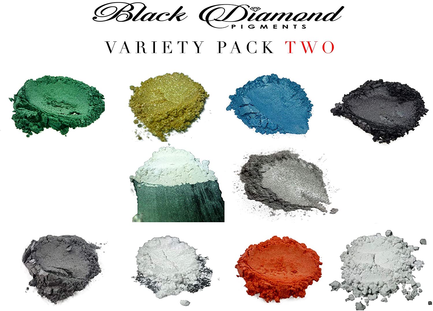 Inicio→Products→Paquete variado de 2 (10 colores) polvo de Mica Pure, 2 tonos serie variedad de pigmentos (epoxi, pintura, color, arte) pigmentos de diamante negro