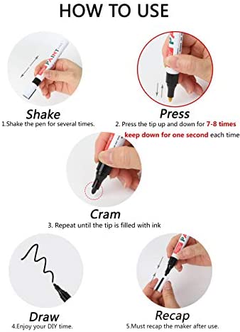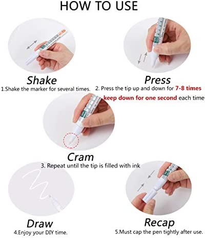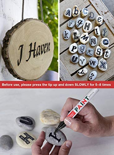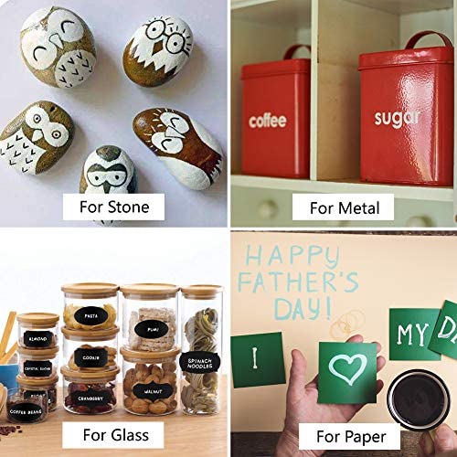 Funciona en casi todas las superficies: utiliza estos bolígrafos de pintura en casi cualquier superficie sólida con tu imaginación y creación, incluyendo roca, lienzo, madera, papel, metal, vidrio, cerámica, plástico e incluso neumáticos. Perfecto para bricolaje, crear un montón de proyectos de manualidades, desde pintura de roca hasta arte de tazas y adornos.