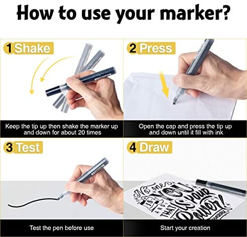 • 💗 【createYour Pieces】Create your world: decorating wedding chalkboard, Handmade leather goods, painted glasses , creating labels, or rock supplies art projects. Our Black drawing markers are ideal for artists, students, teenagers & adults.