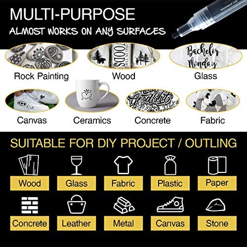 • 💗 【Non-Toxic & Safe 】Black acrylic paint markers with drying quickly for long-lasting color, safe Ink, no leak, water-based, non-toxic,without strong smell,safe and kid-friendly(We suggest children under 3-years old should be used under the supervision of an adult)