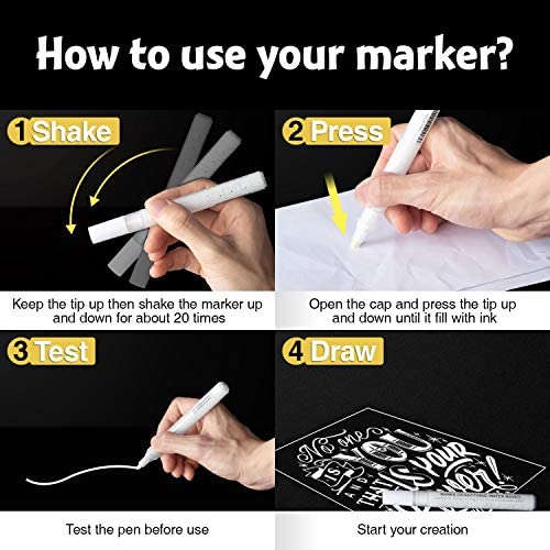 • 💗 【Widely Usage】JR.WHITE paint markers are the best choice for working on a variety of surfaces, including rock,pottery, perfume jar labels, shoes, coffee glass,Wedding blackboard, wooden sign, watercolors, rock,ceramics, plastic, etc