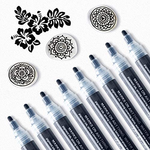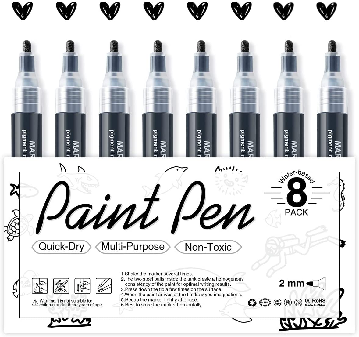 Rotuladores acrílicos para pintura de piedras, cerámica, copas de vino, madera, tela, lienzo, metal, tazas, suministros para manualidades, álbumes de recortes, tarjetas, 8 unidades, Negro - Arteztik Venta