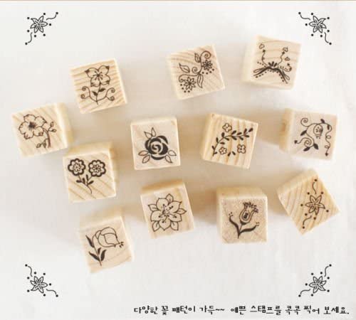 Shopline - 12 sellos vintage de goma de madera con encaje de flores para letras, manualidades, álbumes de recortes