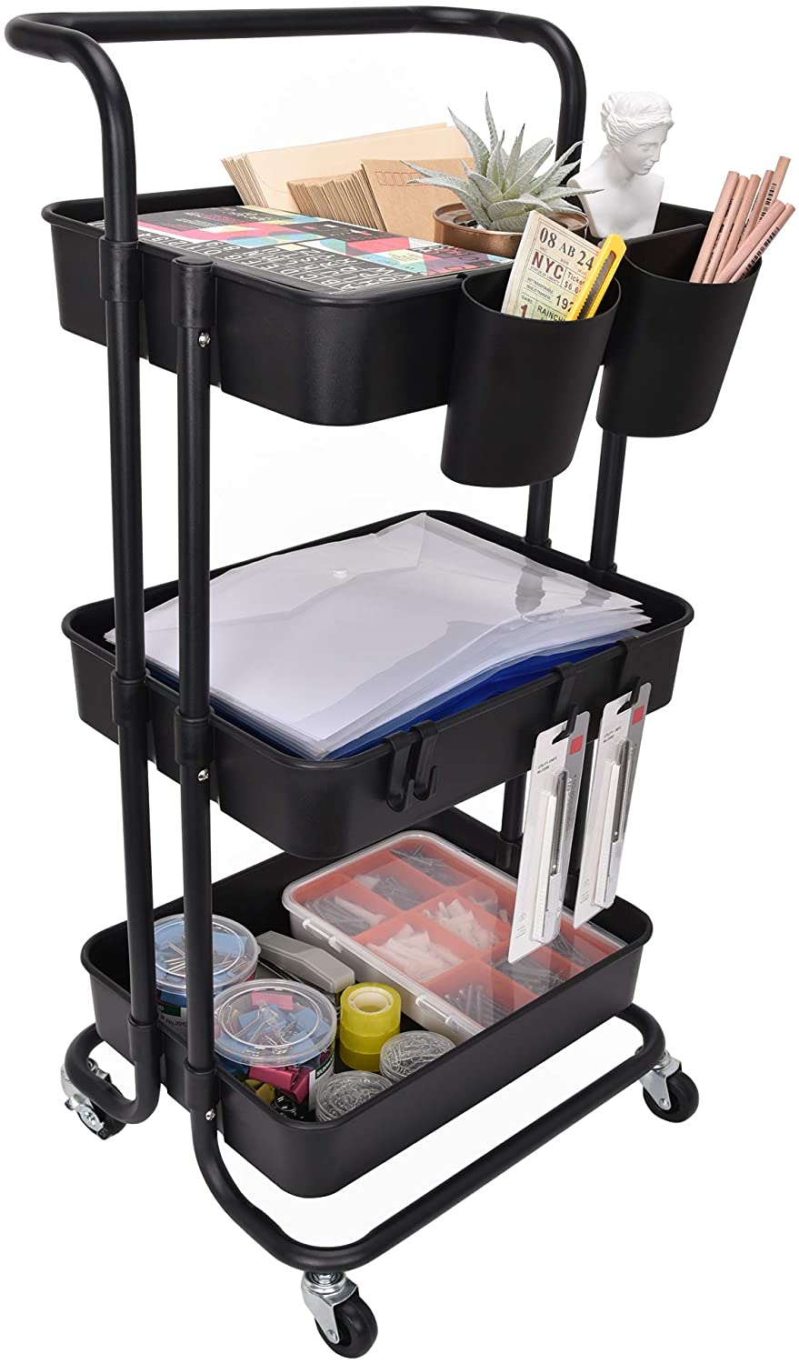 El carrito de tres niveles es ideal para organizar accesorios para el pelo, cepillos de belleza, lociones, maquillaje en el dormitorio. Además, este organizador de carrito es ideal para aparatos de cocina, suministros de limpieza, gel de ducha en el baño, juguetes, accesorios en casa.